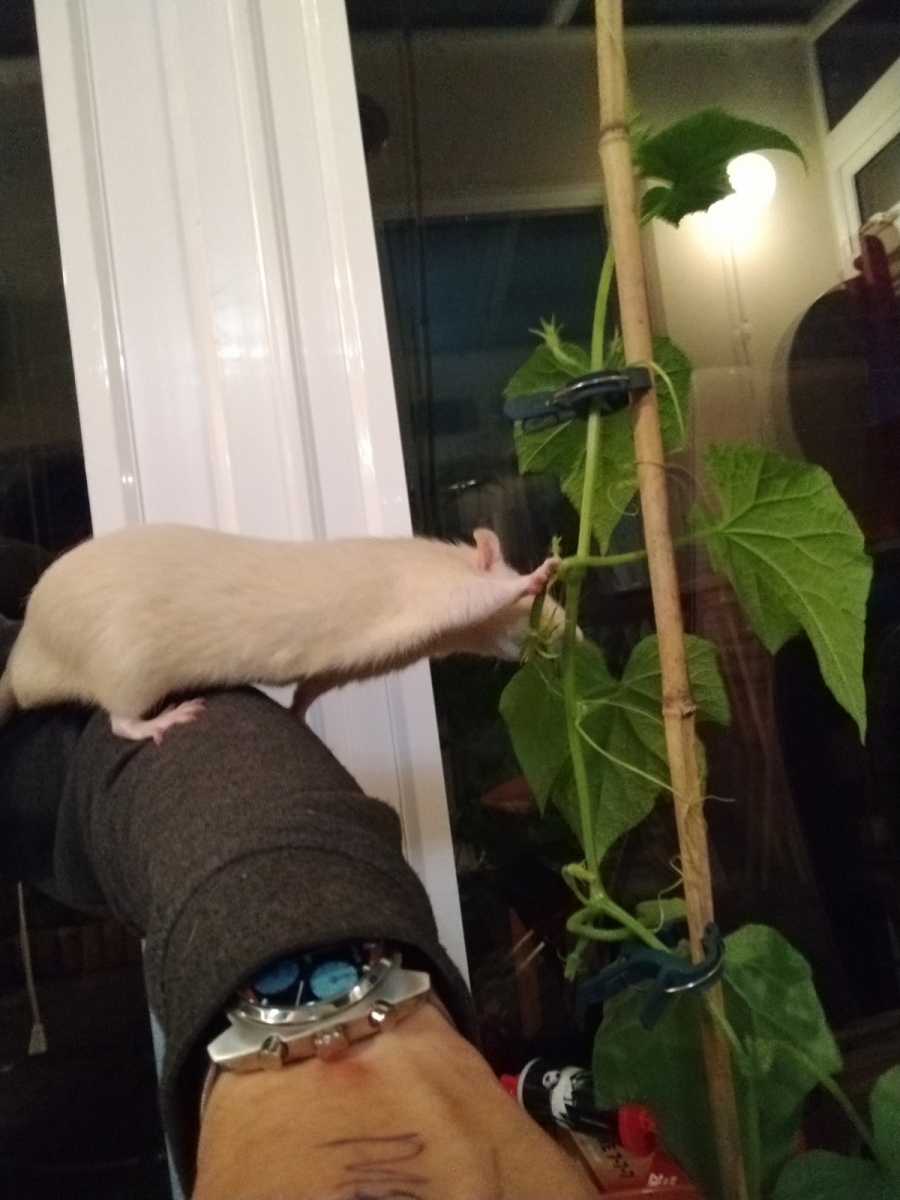 Cucumbers are one of Ronnie and Derek’s favourite food and I grew some plants which have been fruiting over the summer. The photos below show Ronnie waiting impatiently for them to grow, with them both enjoying the resulting product!