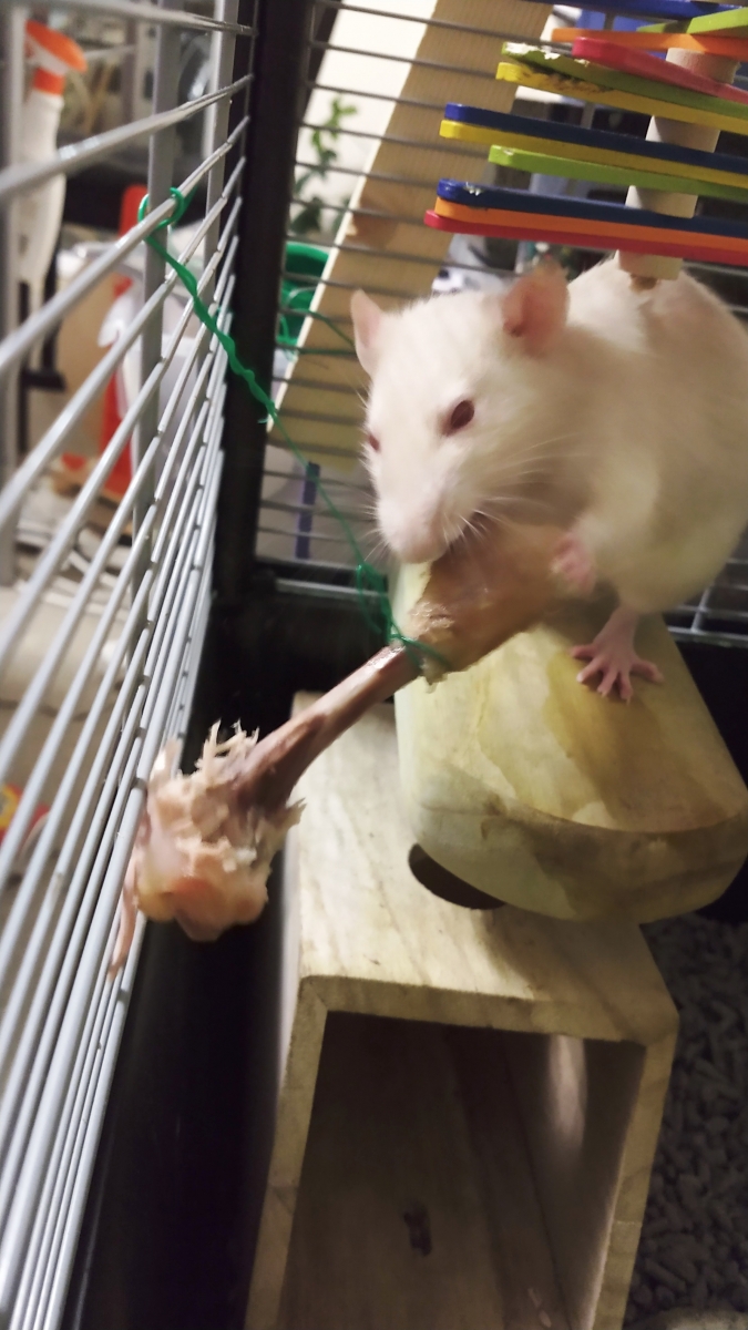 Watch Ronnie and Derek enjoying a carrot nibble stick and the remains of a chicken bone.