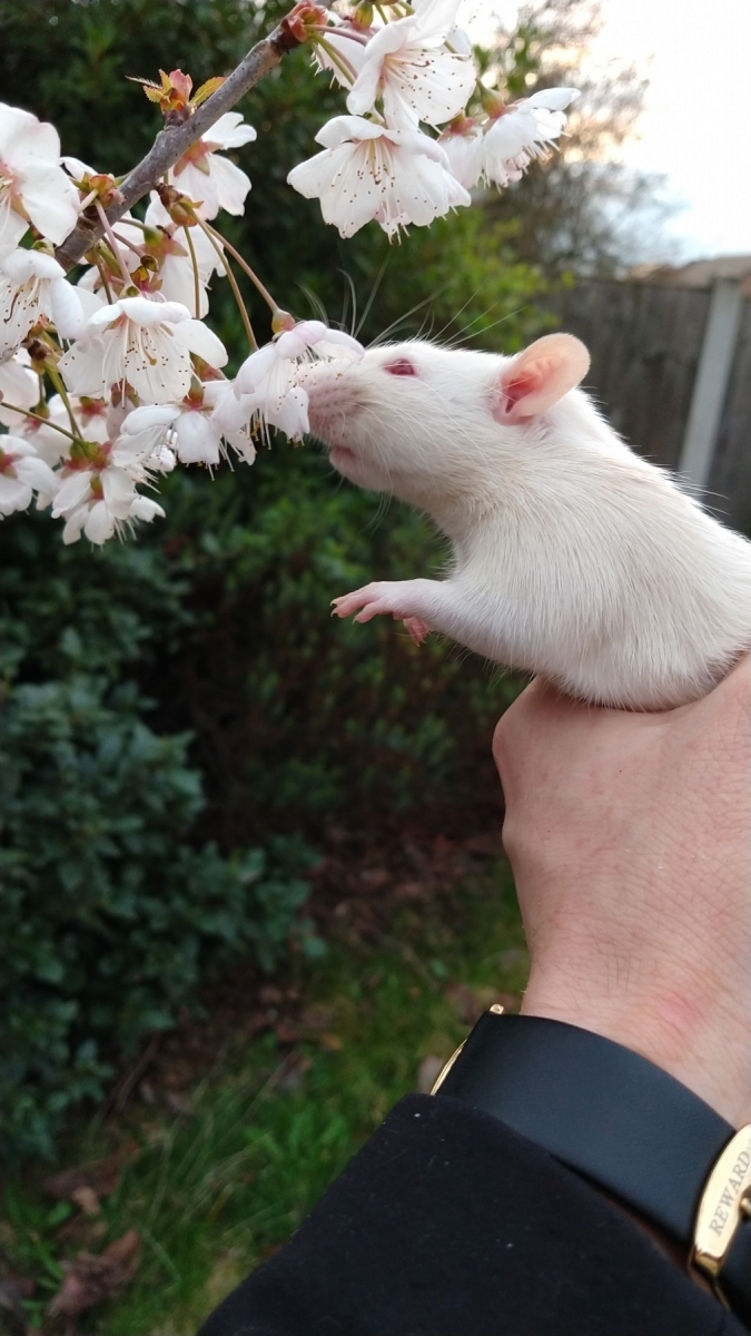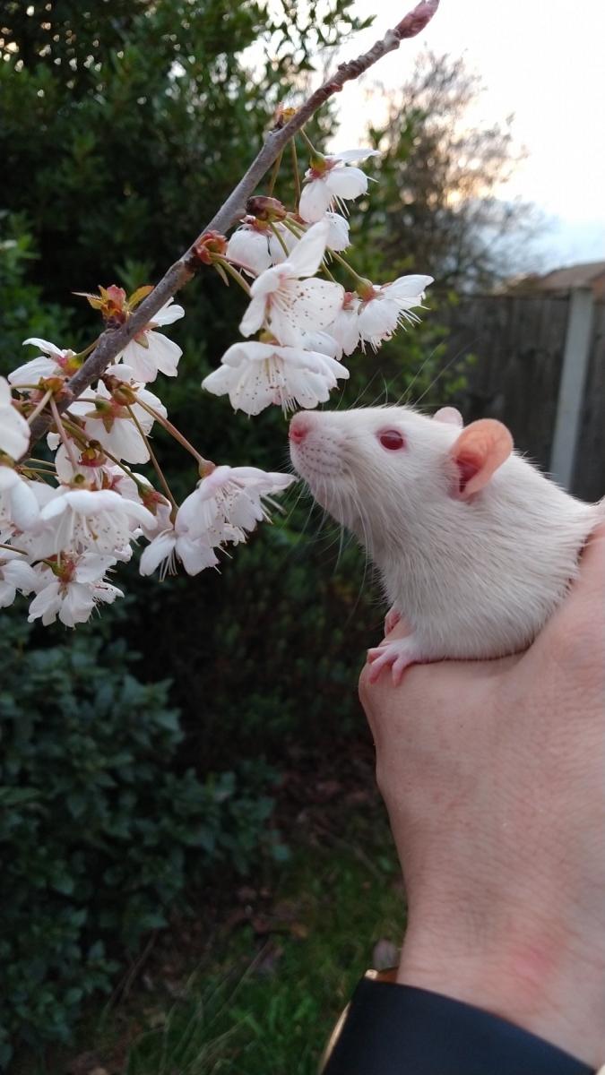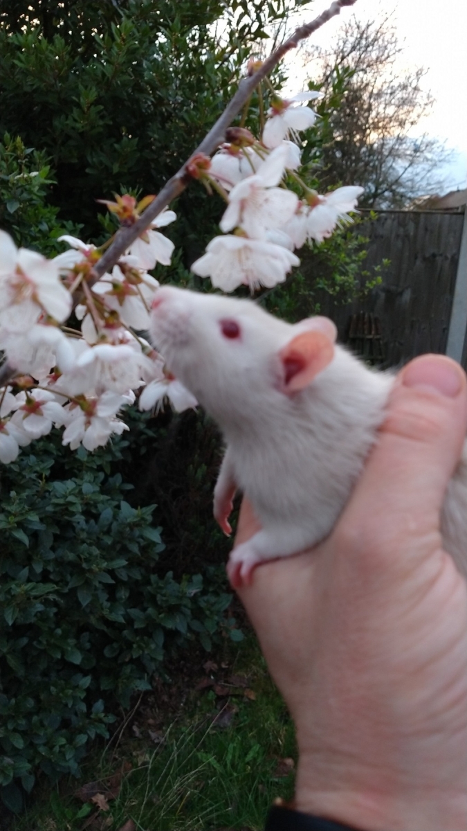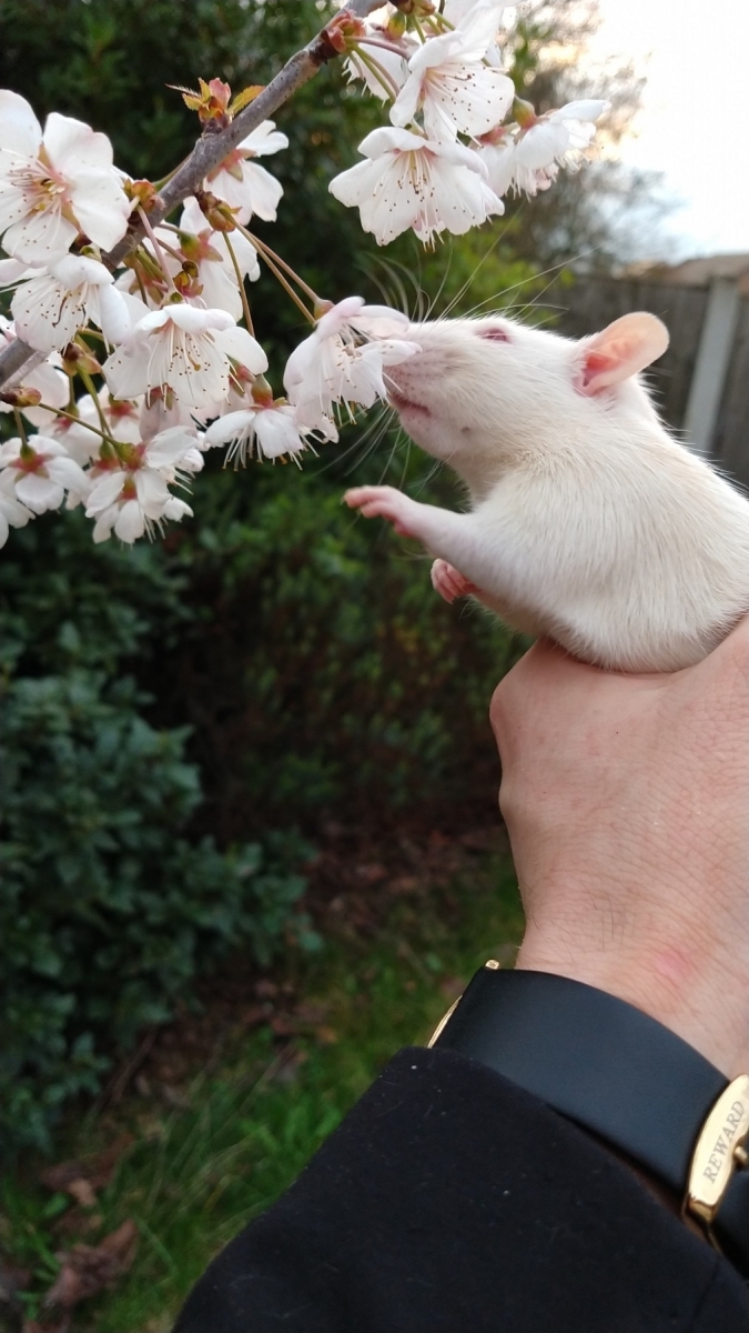 Yesterday, Ronnie and Derek enjoyed the first day of astronomical Spring by smelling tree blossom for the first time and springing out of my shirt!