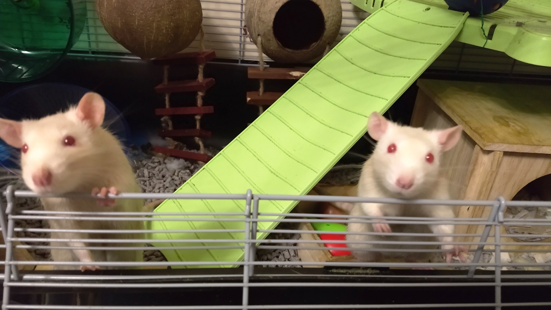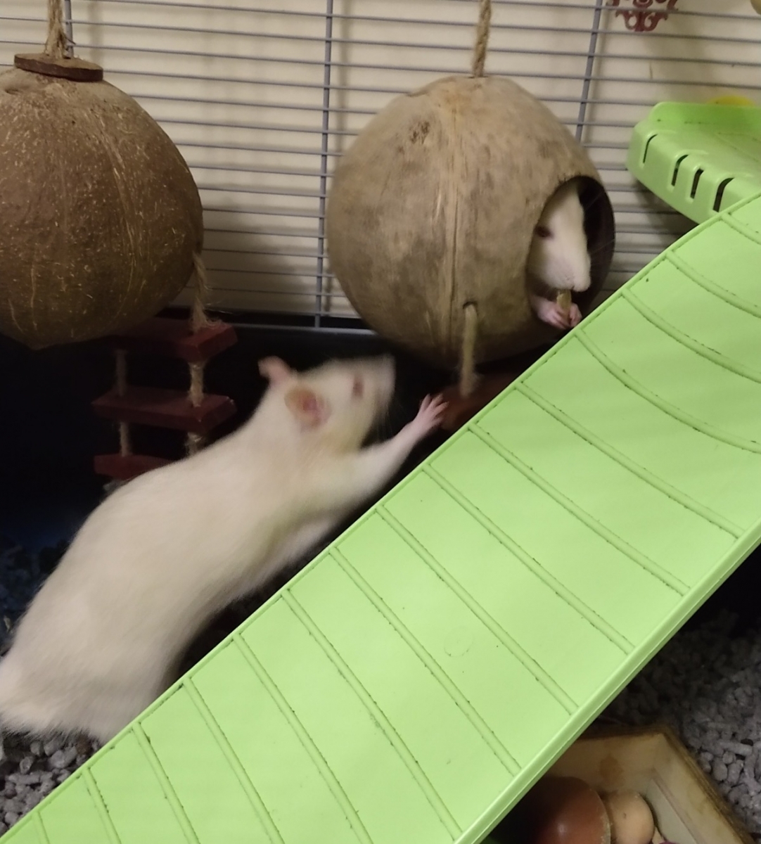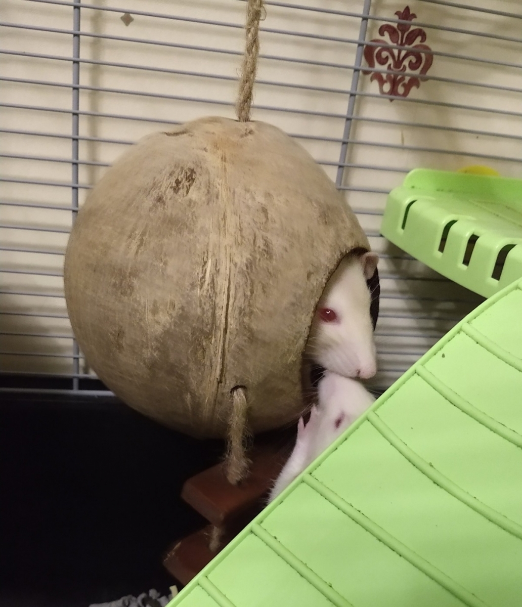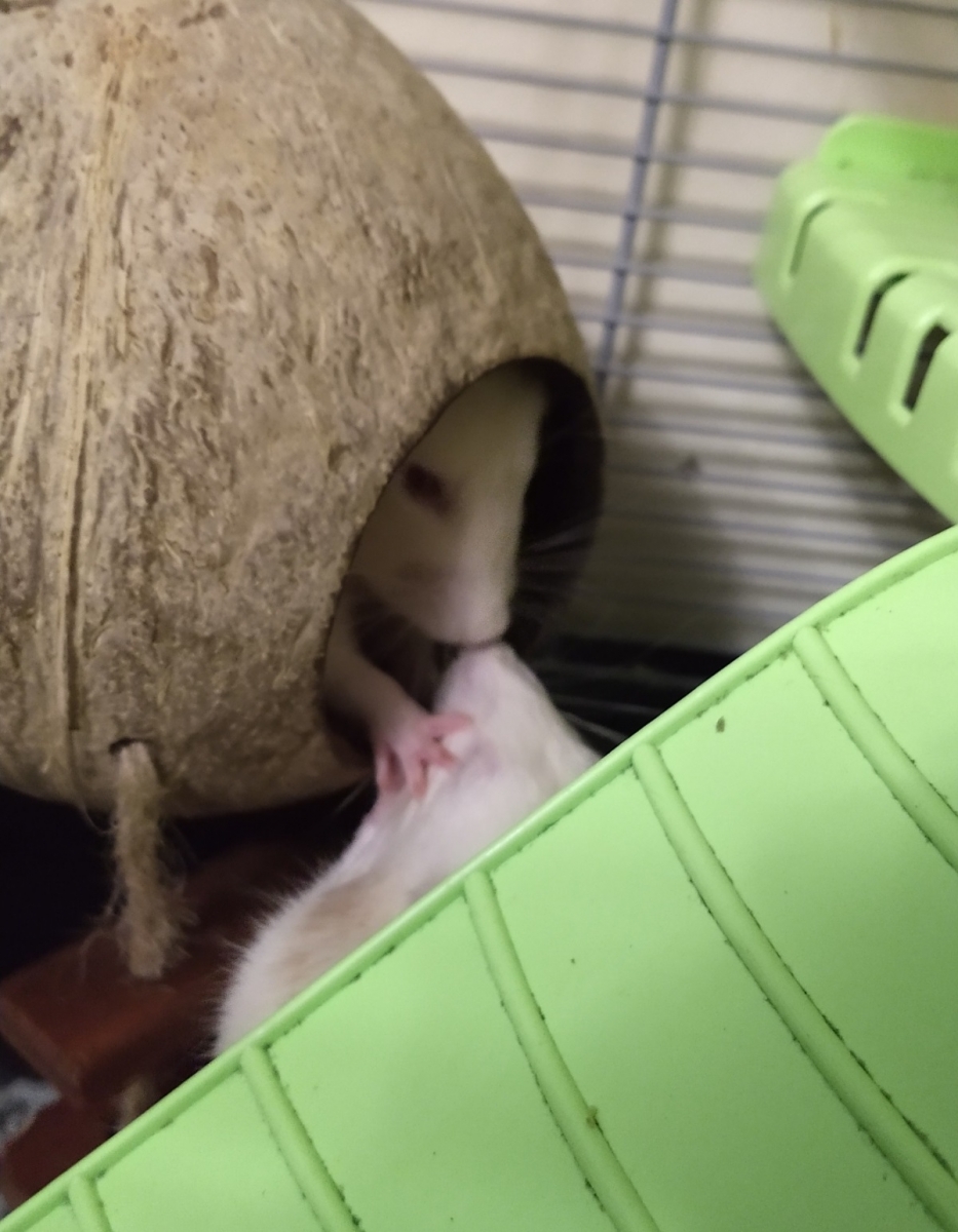 Ronnie and Derek had a bit of a Pringle as a treat. Ronnie had eaten his but Derek was still eating his in the ‘coconut shell’. Ronnie thought he’d try his luck and steal Derek’s, but it didn’t work out.